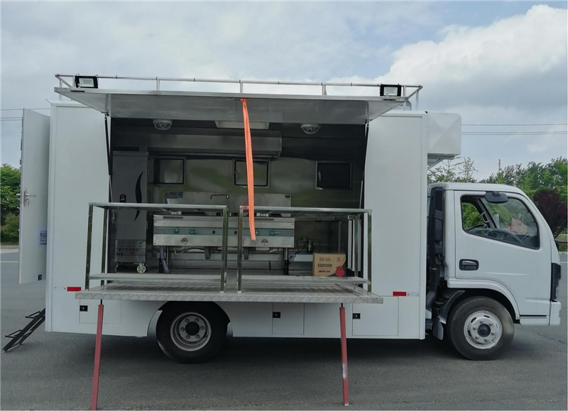 東風國六WWW5040XCCE6型東風餐車,該車是我公司成熟產品,選用東風國六底盤,箱體材質外冷板內不銹鋼板,