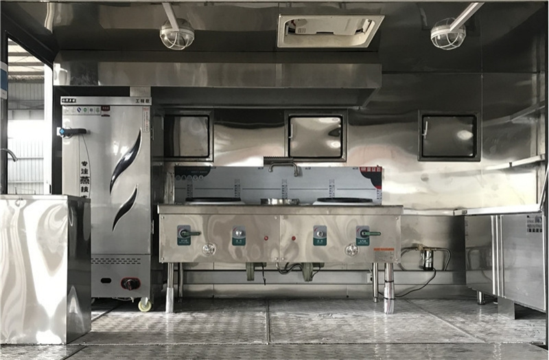 4】廂體內部配備蒸飯柜、猛火灶、平冷柜、煙機、水池、菜架