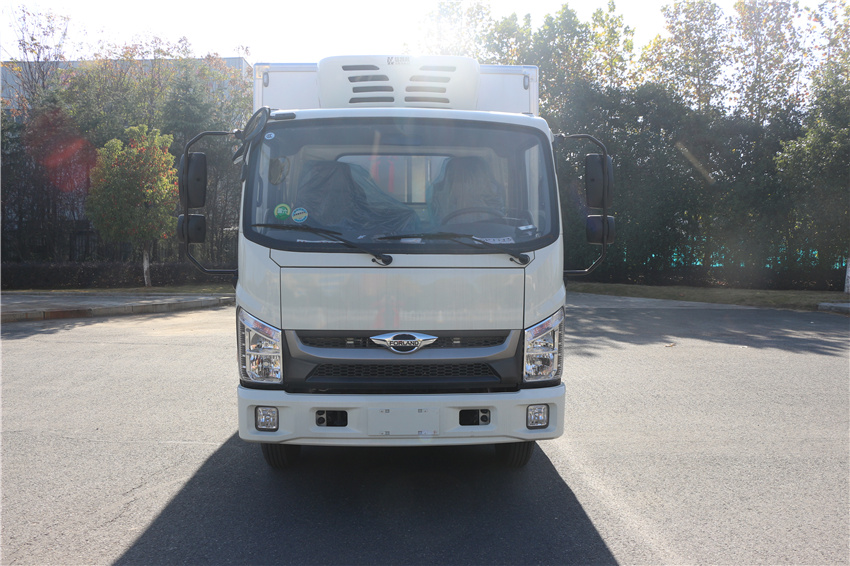 福田H2冷藏車采用全柴115馬力(Q23-115C60)發動機,萬里揚5擋變速箱,NPR沖壓后橋(帶制動襯片磨損報警),7.00R16輪胎,斷氣剎、單排翻轉、車載無線服務控制器(T-BOX)、ABS、離合助力、動轉,